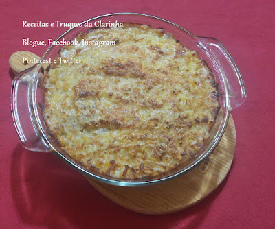 Verta o preparado para um pirex, polvilhe com queijo ralado a seu gosto e leve ao forno durante 15 minutos a gratinar.